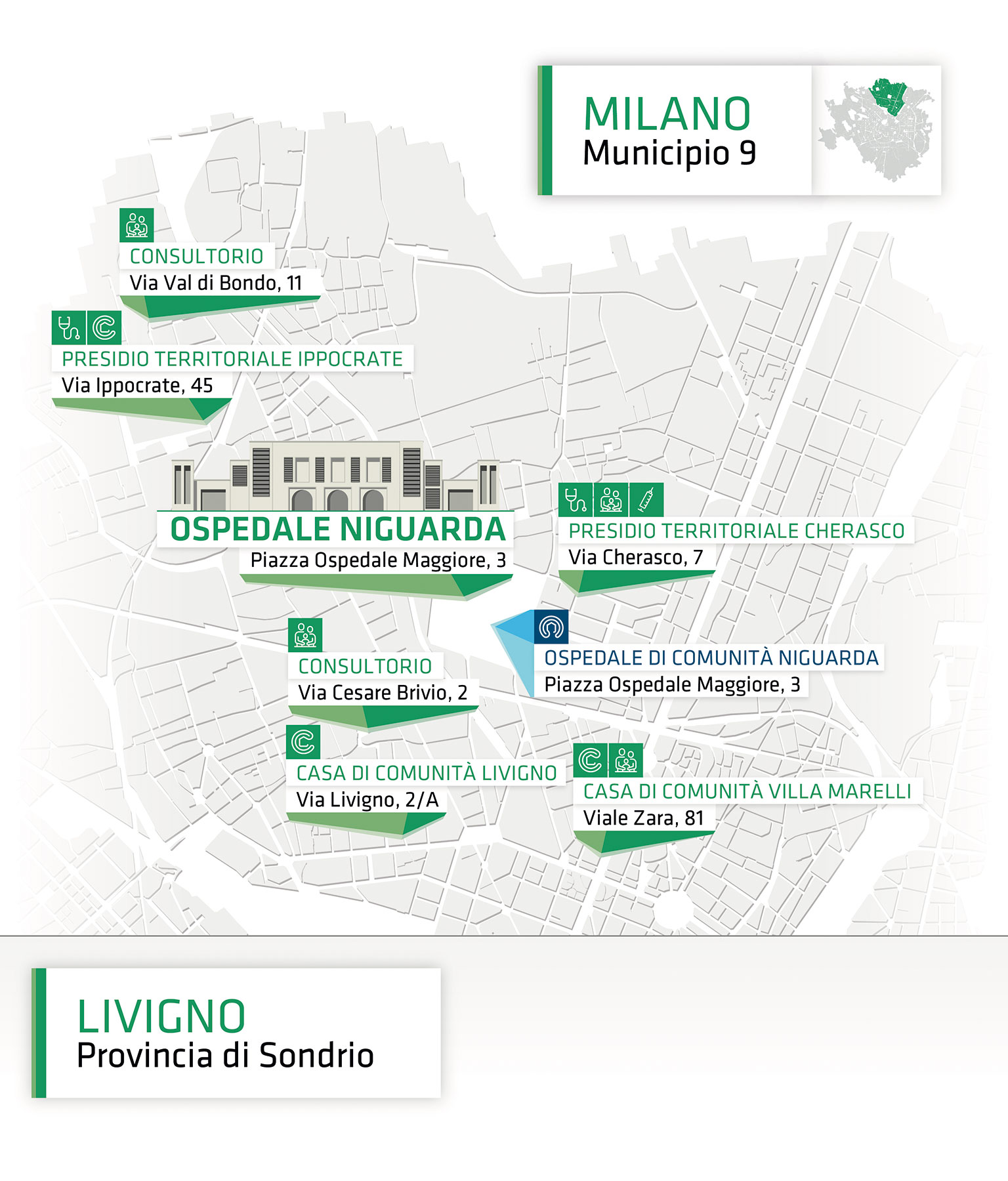 È attivo un Centro prelievi anche presso il Blocco Nord, il Poliambulatorio Livigno e il Poliambulatorio Ippocrate (pad. 4).